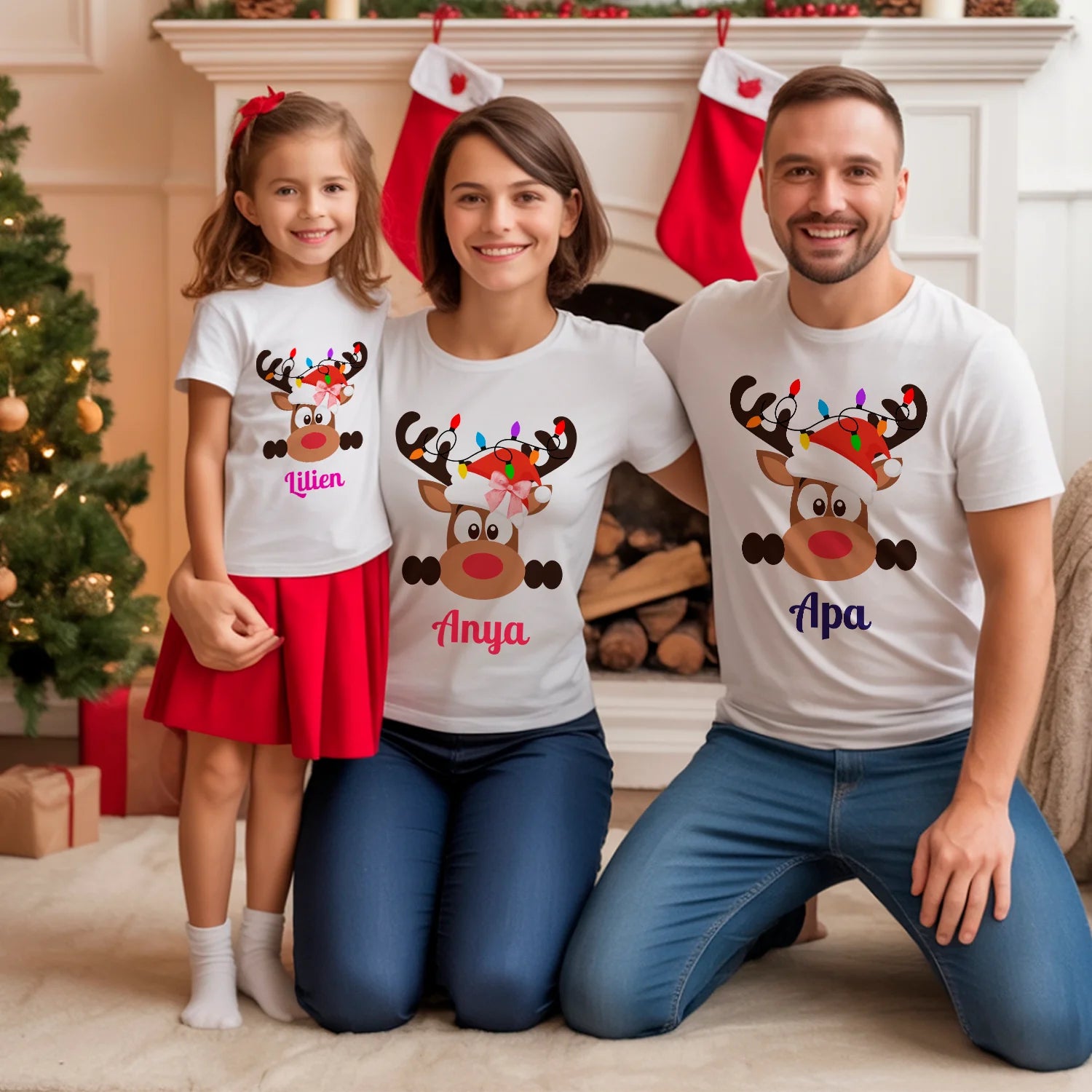 Családi Rénszarvasos Karácsonyi Póló Névvel