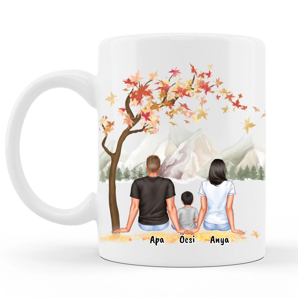 Ülő Család - Anyák Napi Bögre - Személyre Szabható, akár 3 gyermekkel